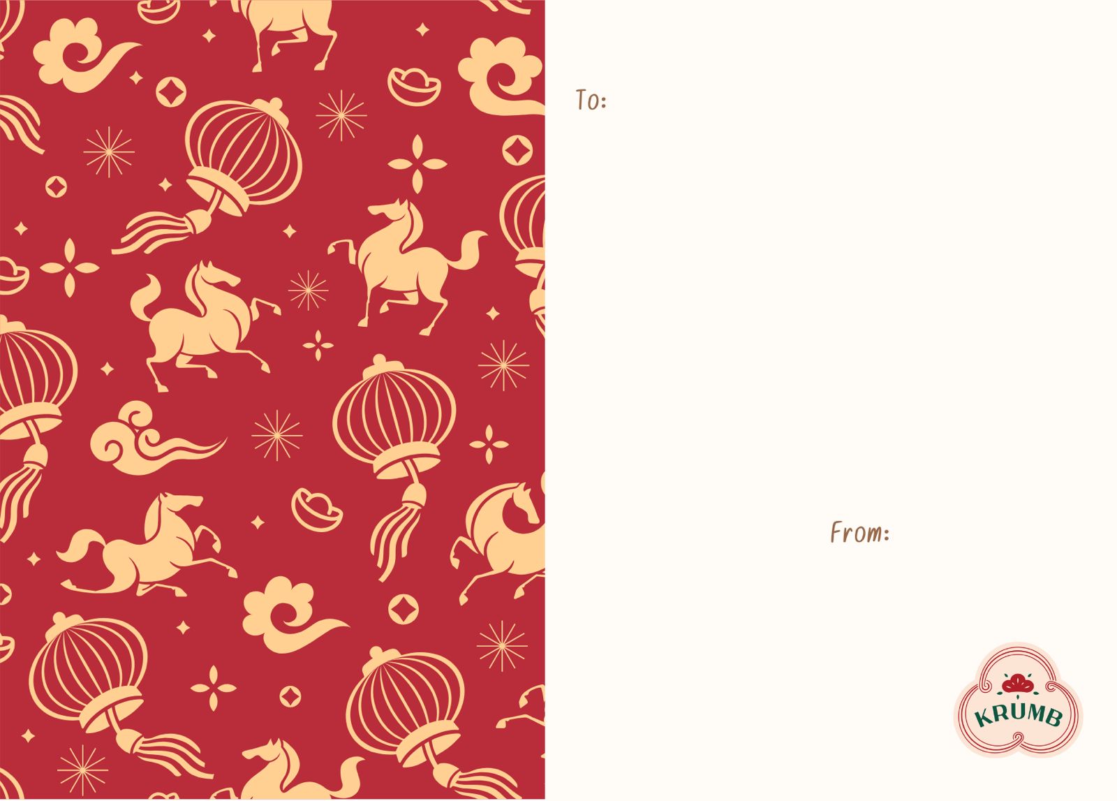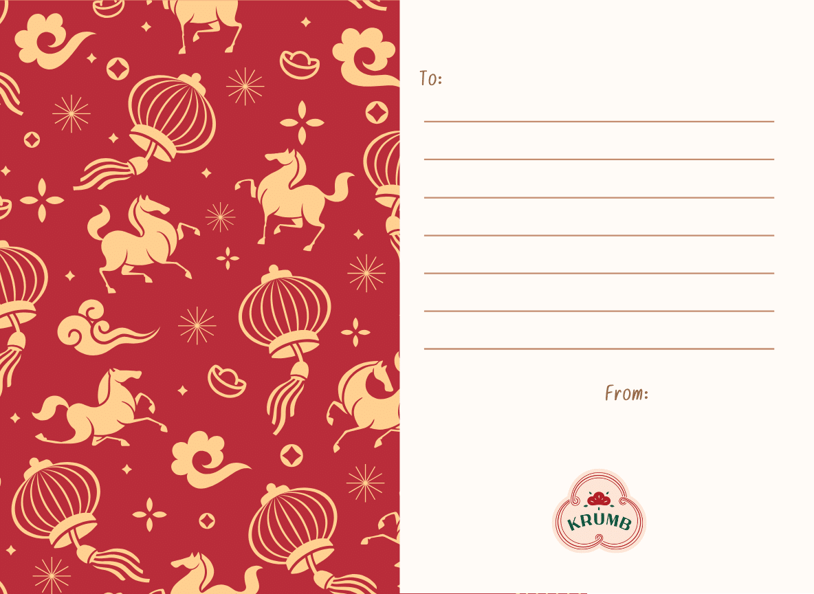 Add warmth and meaning to your festive gifting with our Krumb Greeting Card. Designed with elegant details and printed on premium cardstock, ready to complement your CNY Cookies, gift sets, and special deliveries.