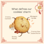 The perfect balance of wholesome grains and nutty indulgence with crunchy cereal, and the natural goodness of buttery pecans and creamy cashews. These cookies deliver a medley of textures and flavours, giving a satisfying crunch in every bite. Complements the season’s indulgent offerings while adding a wholesome twist to your festive table!